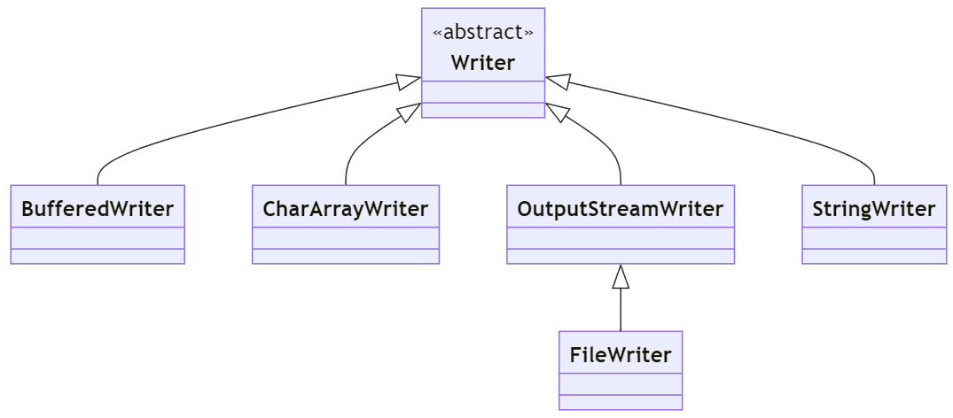 문자 기반의 출력 스트림은 최상위 클래스 Writer를 상속해 다양한 클래스를 제공한다.